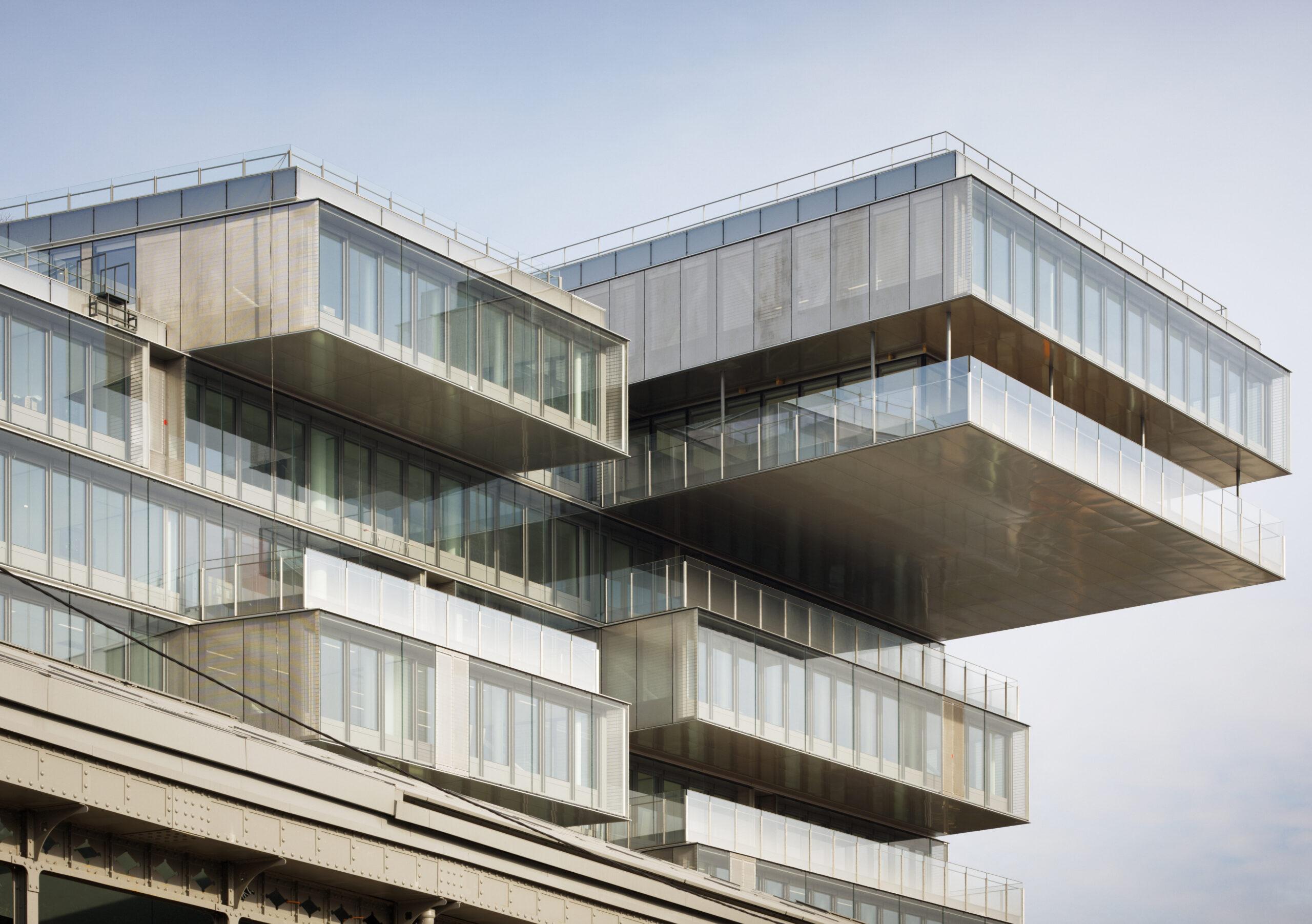 Located in front of the Île Saint-Germain, Bridge is divided into two buildings bordering a public pedestrian space on the banks of the Seine. The first one is an office building and the second one is a large, rehabilitated Eiffel hall