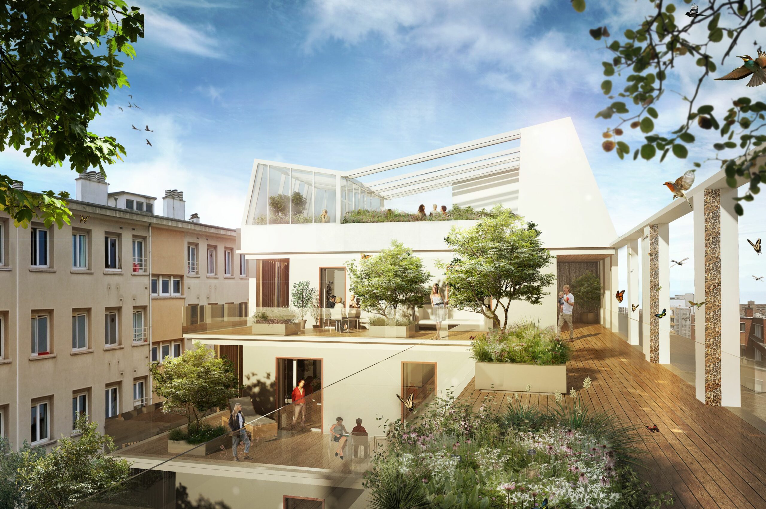 Accueillant cuisine d’été, jardins thématiques, salons et services partagés, ils permettront aux habitants de déployer les limites perçues de leur habitat et faciliteront les rencontres et l’émergence d’une réelle communauté au sein de FLUX.
