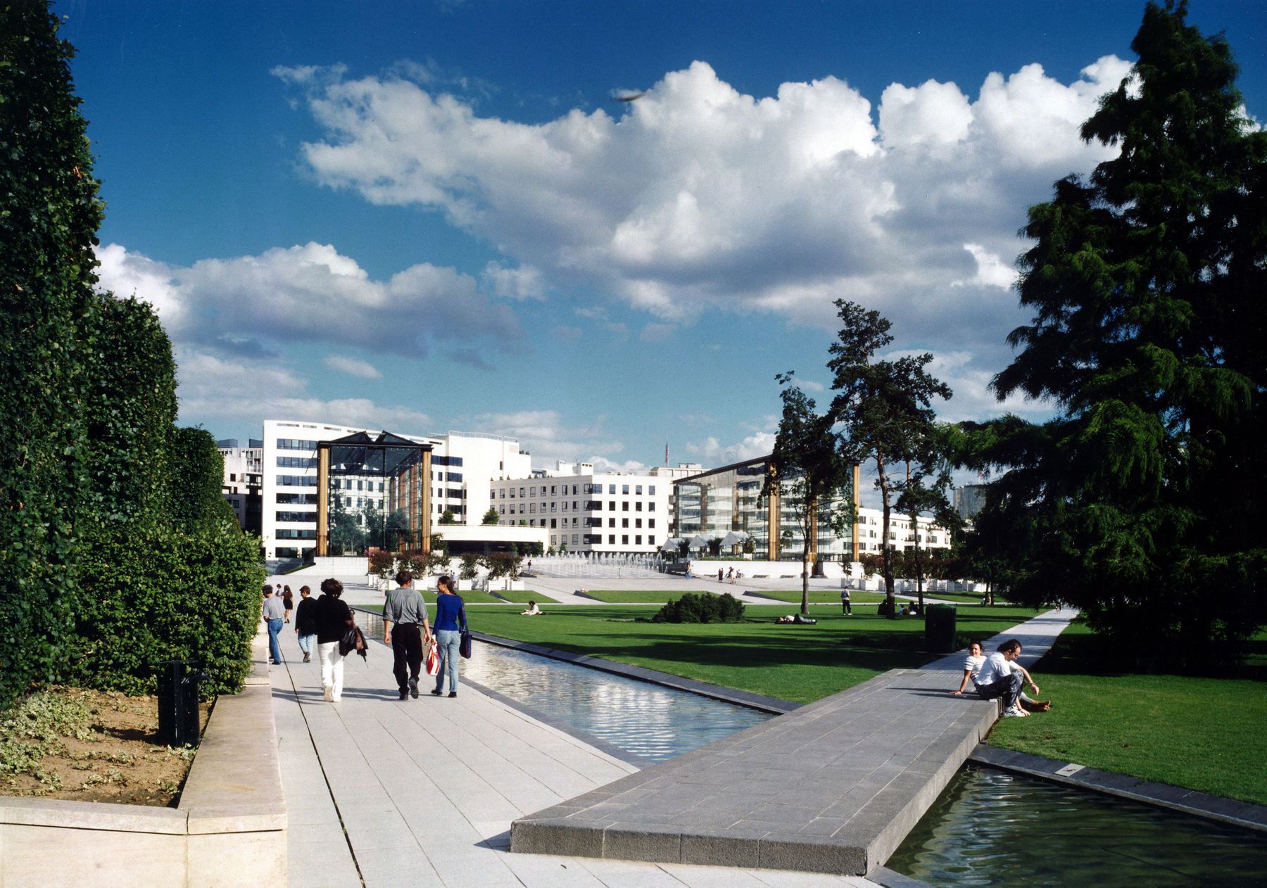 The central lawn is the empty space around which all the other parts of the site are articulated, where they draw their meaning and the strength of their relationship. It slopes gently downwards and allows for unobstructed access to the Seine, thanks to the tunneling of the riverbank and the creation of a viaduct for the RER tracks.