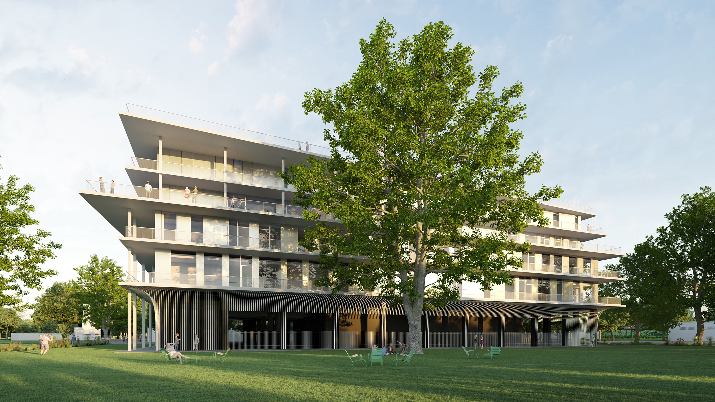 Le futur bassin olympique de 50 mètres sera posé sur le toit, à 21 mètres de hauteur, avec vue sur la Garonne et la ville de Toulouse.