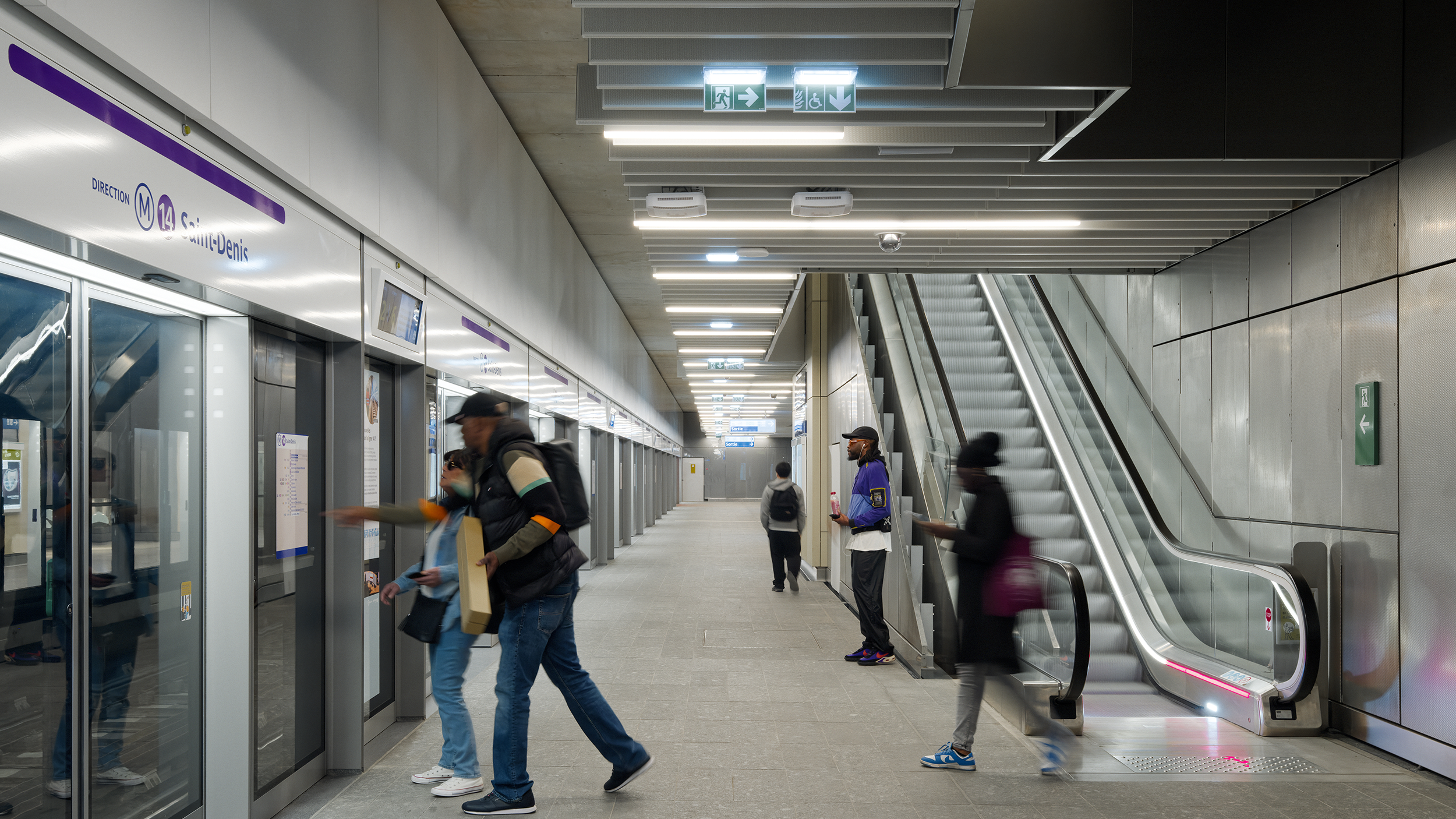 La toiture de la gare joue le rôle d’élément identificateur du projet. L’univers spécifique de la gare Kremlin-Bicêtre Hôpital se construit à travers l’horizontalité de la grande toiture et l’enchaînement désinvolte des parois élémentaires. Privilégiant l’usage du bois pour sa structure et sa sous-face, une vaste couverture apportera une ambiance particulière au hall de la gare, une impression de bien-être propre à s’adresser aux sens.