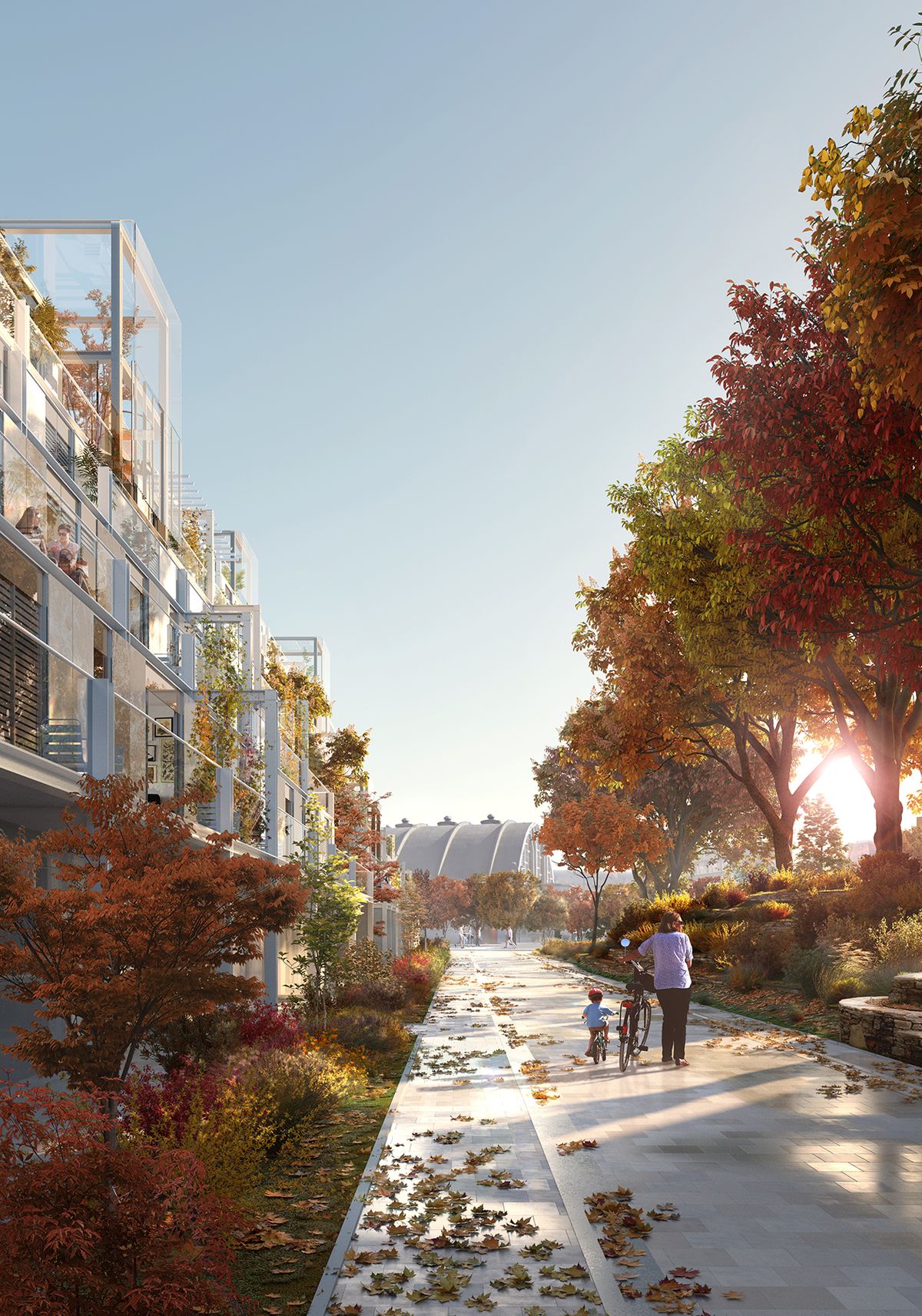 Dans ce programme constitué essentiellement de logements, nous tissons une séquence urbaine, architecturale et paysagère dans un socle vivant ponctué de programmes commerciaux. Cette démarche conjugue la culture et la nature, la vitalité et l’intime. Elle s’installe dans ce maillon central pour donner aux habitants : repères, proximité, bien-être et intimité.