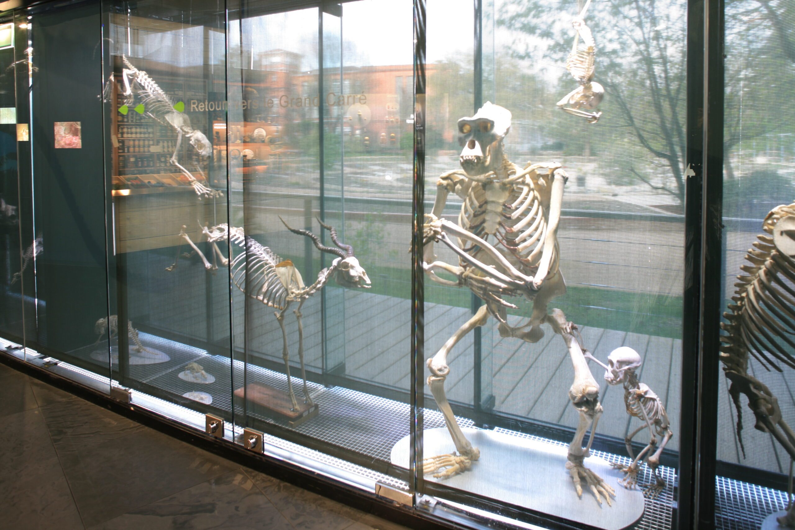 Une grande façade courbe de 120m de longueur, véritable vitrine du Nouveau Muséum, constitue le lien interactif entre les différents éléments et affirme l’unité de la composition. Elle est conçue sur le principe de la « double peau », la membrane extérieure joue un rôle de filtre qui contrôle et diffuse la lumière, tandis que les étagères pour minéraux et squelettes qui équipent la peau intérieure créent des ambiances en relation avec les différents espaces d’exposition. Ces expositions sont regroupées sur deux grands plateaux de plan libre, superposés aux locaux destinés à la conservation.