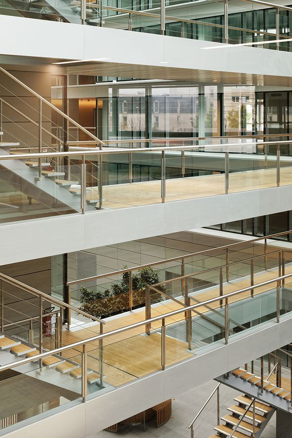 L’entrée Sud-Ouest sera réorganisée au travers d’un prolongement en porte-à-faux du corps de bâtiment situé rue François Jacob. Pour cette modification, il faudra démolir et reconstruire sur cinq niveaux deux trames de la structure du bâtiment existant pour ancrer la structure supportant le porte-à-faux.