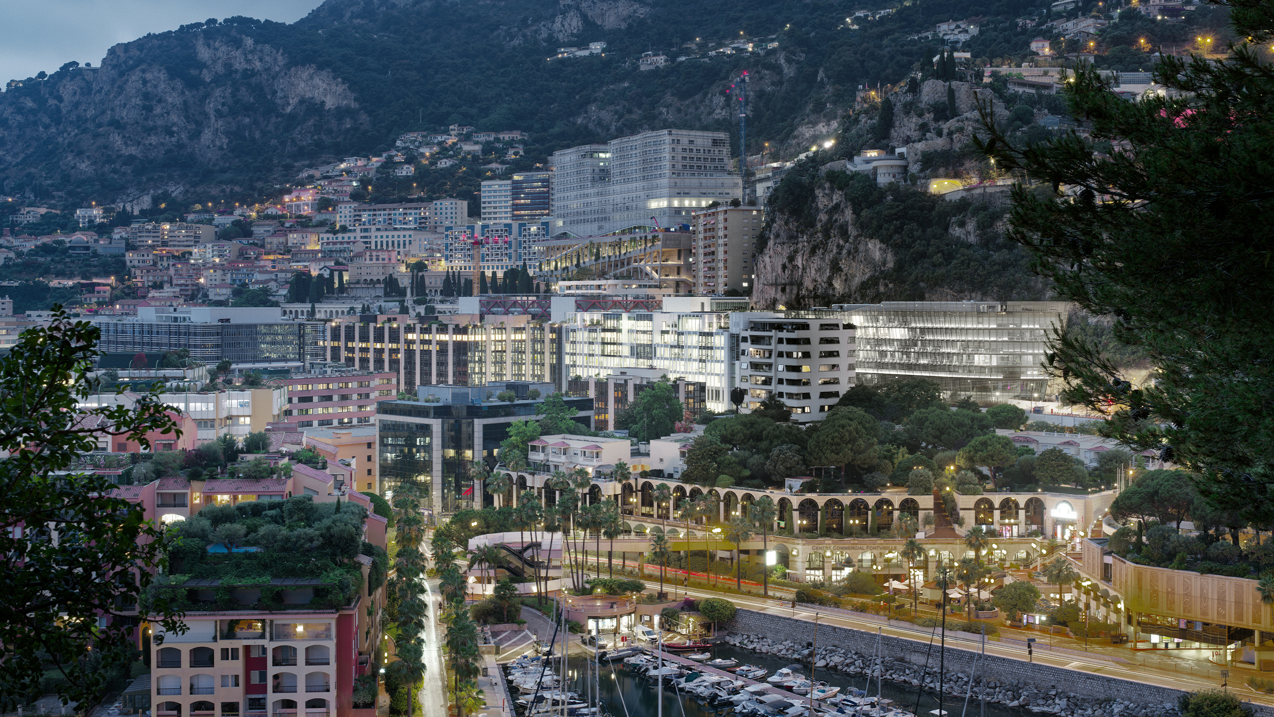 Situé dans le quartier de Fontvieille à Monaco, le nouveau siège de la SMEG (Société Monégasque de l’Électricité et du Gaz) occupe une position stratégique entre le port et la falaise. Au cœur d’un tissu urbain dense, le bâtiment répond à une double exigence d’intégration : dialoguer avec la skyline de Monaco tout en s’ancrant dans son environnement immédiat par un socle soigneusement traité.